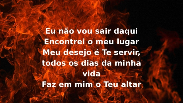 - Eu não vou sair daquiEncontrei o meu lugarMeu desejo é Te servir, todos os dias da minha vidaFaz em mim o Teu altar