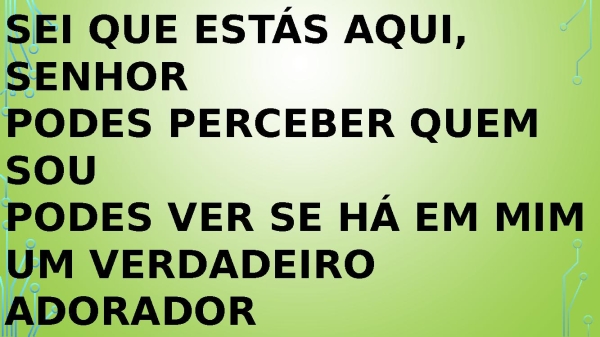 - Sei que estás aqui, senhor Podes perceber quem sou Podes ver se há em mim Um verdadeiro adorador
