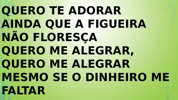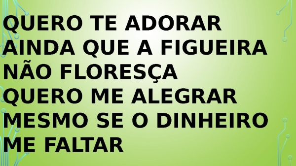 - Quero te adorar Ainda que a figueira não floresça Quero me alegrar, quero me alegrar Mesmo se o dinheiro me faltar