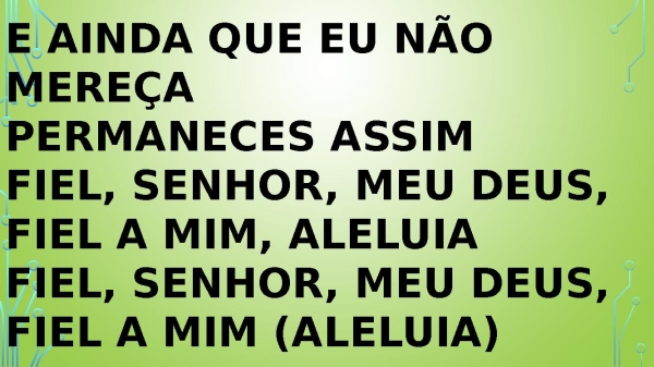 - E ainda que eu não mereça Permaneces assim Fiel, senhor, meu Deus, fiel a mim, aleluia Fiel, senhor, meu Deus, fiel a mim (aleluia)