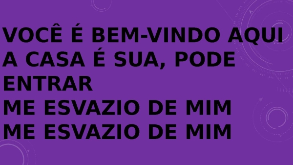 - Você é bem-vindo aqui A casa é Sua, pode entrar Me esvazio de mim Me esvazio de mim