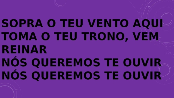 - Sopra o Teu vento aqui Toma o Teu trono, vem reinar Nós queremos Te ouvir Nós queremos Te ouvir