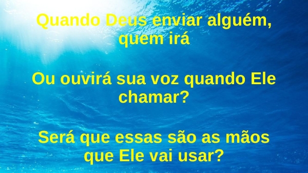 - Quando Deus enviar alguém, quem iráOu ouvirá sua voz quando Ele chamar?Será que essas são as mãos que Ele vai usar?