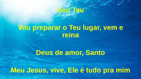 - Sou TeuVou preparar o Teu lugar, vem e reinaDeus de amor, SantoMeu Jesus, vive, Ele é tudo pra mim