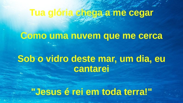 - Tua glória chega a me cegarComo uma nuvem que me cercaSob o vidro deste mar, um dia, eu cantarei"Jesus é rei em toda terra!"