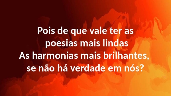 - Pois de que vale ter as poesias mais lindasAs harmonias mais brilhantes, se não há verdade em nós?