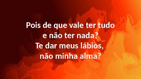- Pois de que vale ter tudoe não ter nada?Te dar meus lábios, não minha alma?