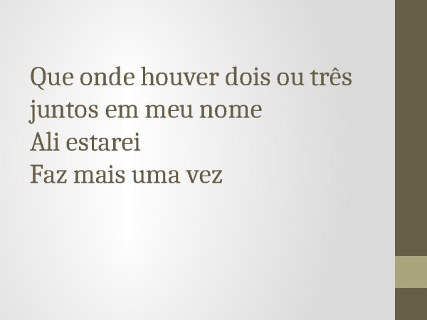 - Que onde houver dois ou três juntos em meu nomeAli estareiFaz mais uma vez