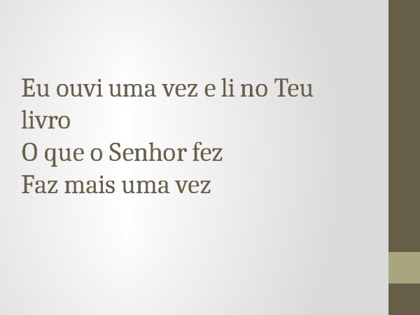 - Eu ouvi uma vez e li no Teu livroO que o Senhor fezFaz mais uma vez