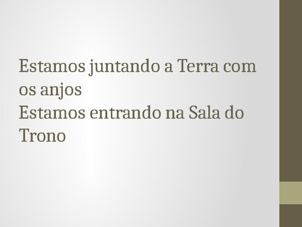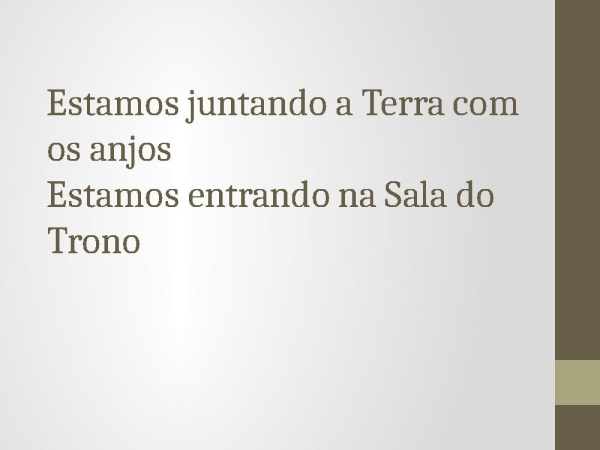 - Estamos juntando a Terra com os anjosEstamos entrando na Sala do Trono