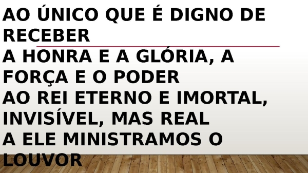 - Ao único que é digno de receber A honra e a glória, a força e o poder Ao Rei eterno e imortal, invisível, mas real A Ele ministramos o louvor