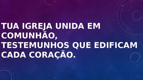 - Tua igreja unida em comunhão,Testemunhos que edificam cada coração.