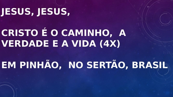- Jesus, Jesus, Cristo é o caminho, a verdade e a vida (4x)Em pinhão, no sertão, Brasil
