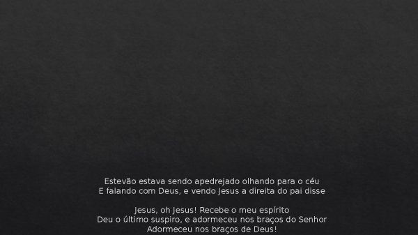 - Estevão estava sendo apedrejado olhando para o céuE falando com Deus, e vendo Jesus a direita do pai disseJesus, oh Jesus! Recebe o meu espíritoDeu o último suspiro, e adormeceu nos braços do SenhorAdormeceu nos braços de Deus!