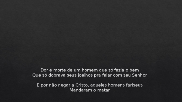 - Dor e morte de um homem que só fazia o bemQue só dobrava seus joelhos pra falar com seu SenhorE por não negar a Cristo, aqueles homens fariseusMandaram o matar