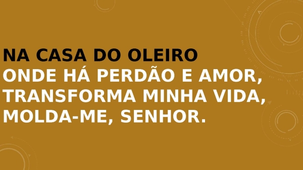 - Na casa do oleiro Onde há perdão e amor,Transforma minha vida, molda-me, Senhor.