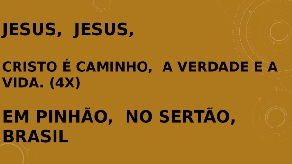 - Jesus, Jesus, Cristo é caminho, a verdade e a vida. (4x)Em pinhão, no sertão, Brasil