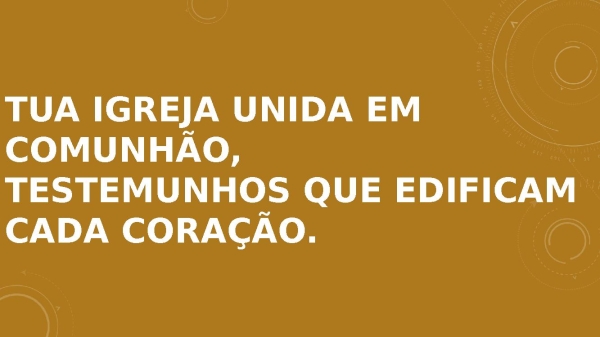 - Tua igreja unida em comunhão,Testemunhos que edificam cada coração.
