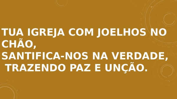 - Tua igreja com joelhos no chão, Santifica-nos na verdade, trazendo paz e unção.