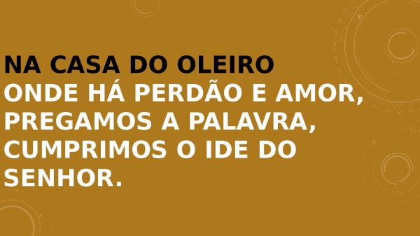- Na casa do oleiro Onde há perdão e amor, Pregamos a palavra,cumprimos o ide do senhor.