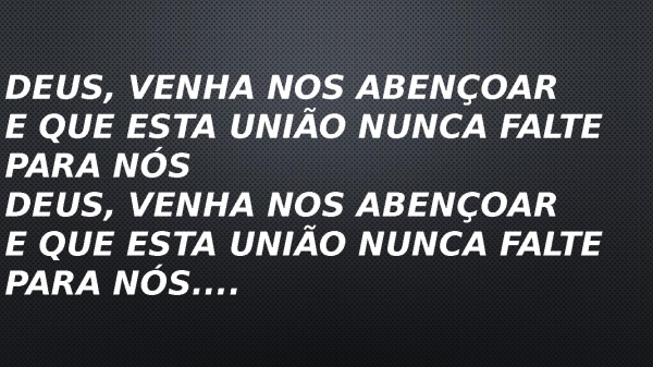 - Deus, venha nos abençoar E que esta união nunca falte para nós Deus, venha nos abençoar E que esta união nunca falte para nós....