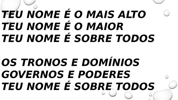 - Teu nome é o mais alto Teu nome é o maior Teu nome é sobre todos Os tronos e domínios Governos e poderes Teu nome é sobre todos
