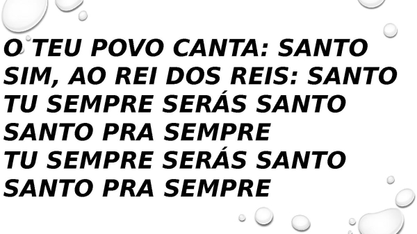 - O Teu povo canta: Santo Sim, ao Rei dos reis: Santo Tu sempre serás Santo Santo pra sempre Tu sempre serás Santo Santo pra sempre