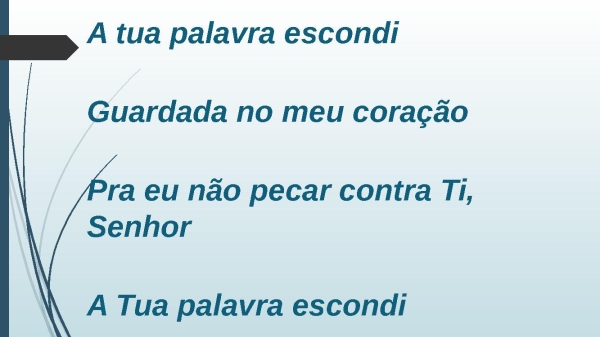- A tua palavra escondiGuardada no meu coraçãoPra eu não pecar contra Ti, SenhorA Tua palavra escondi