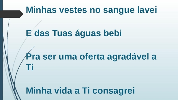 - Minhas vestes no sangue laveiE das Tuas águas bebiPra ser uma oferta agradável a TiMinha vida a Ti consagrei