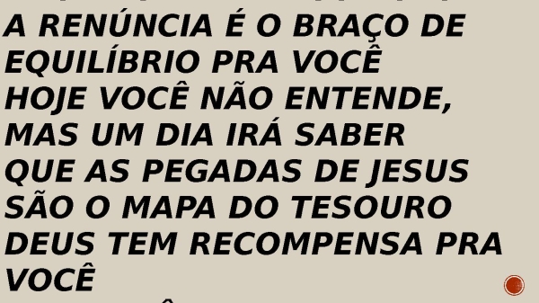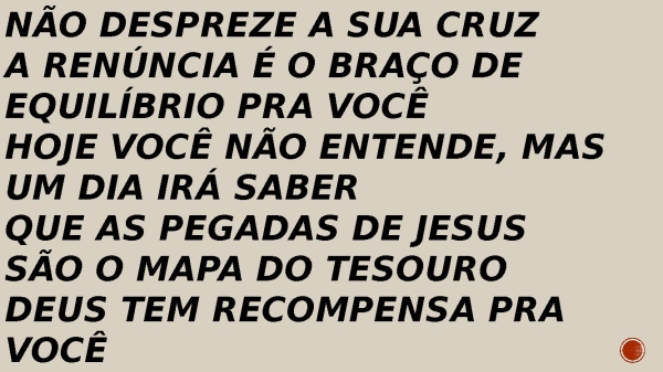 - Não despreze a sua cruz A renúncia é o braço de equilíbrio pra você Hoje você não entende, mas um dia irá saber Que as pegadas de Jesus São o mapa do tesouro Deus tem recompensa pra você