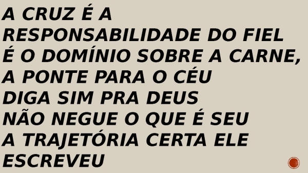 - A cruz é a responsabilidade do fiel É o domínio sobre a carne, a ponte para o céu Diga sim pra Deus Não negue o que é seu A trajetória certa Ele escreveu