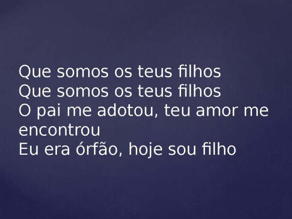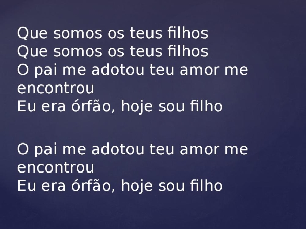 - Que somos os teus filhosQue somos os teus filhosO pai me adotou, teu amor me encontrouEu era órfão, hoje sou filho