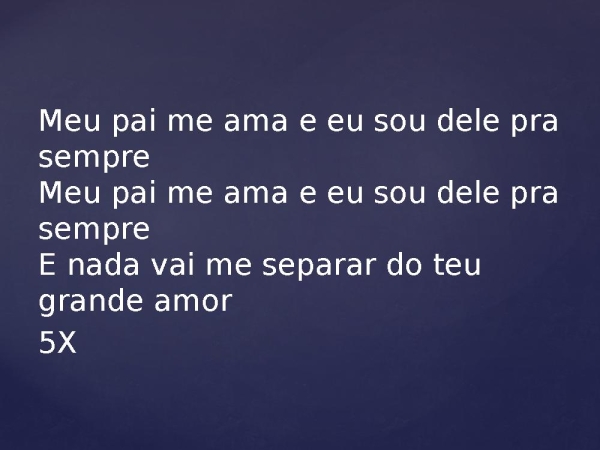 - Meu pai me ama e eu sou dele pra sempreMeu pai me ama e eu sou dele pra sempreE nada vai me separar do teu grande amor5X