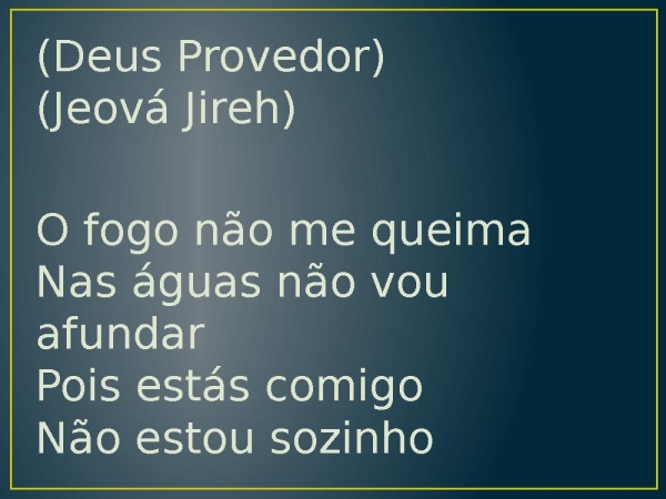 - (Deus Provedor)(Jeová Jireh)O fogo não me queimaNas águas não vou afundarPois estás comigoNão estou sozinho