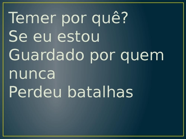 - Temer por quê?Se eu estouGuardado por quem nuncaPerdeu batalhas