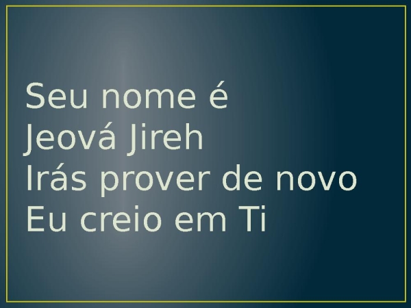 - Seu nome éJeová JirehIrás prover de novoEu creio em Ti