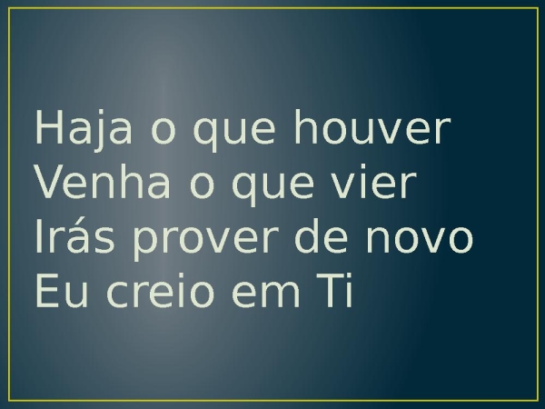 - Haja o que houverVenha o que vierIrás prover de novoEu creio em Ti