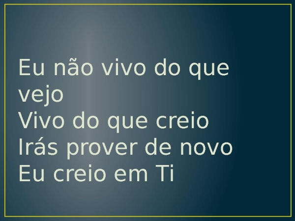 - Eu não vivo do que vejoVivo do que creioIrás prover de novoEu creio em Ti