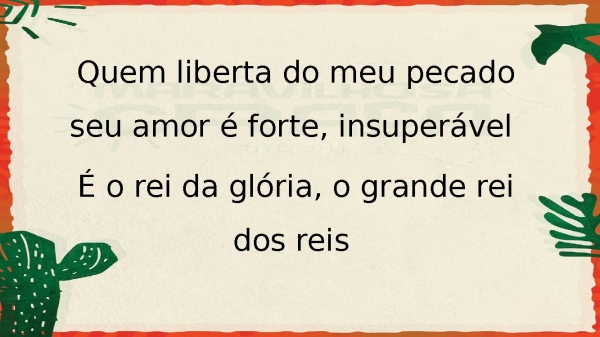 - Quem liberta do meu pecado seu amor é forte, insuperável É o rei da glória, o grande rei dos reis