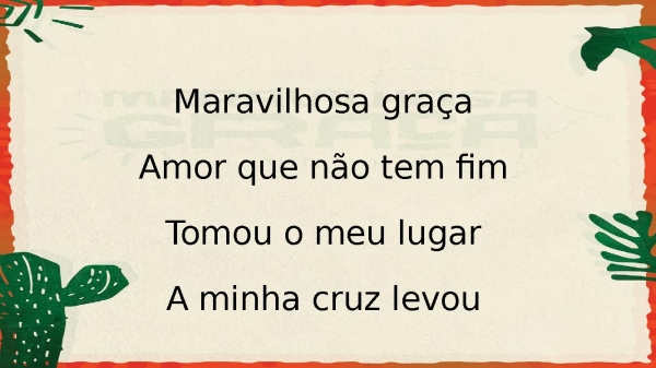 - Maravilhosa graçaAmor que não tem fimTomou o meu lugarA minha cruz levou