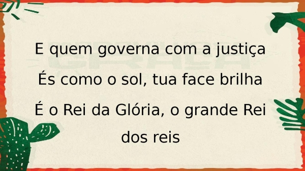 - E quem governa com a justiçaÉs como o sol, tua face brilhaÉ o Rei da Glória, o grande Rei dos reis
