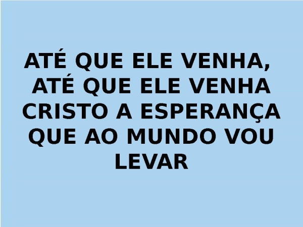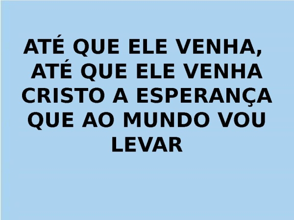 - ATÉ QUE ELE VENHA, ATÉ QUE ELE VENHACRISTO A ESPERANÇA QUE AO MUNDO VOU LEVAR