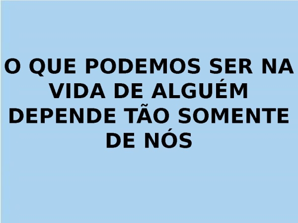 - O QUE PODEMOS SER NA VIDA DE ALGUÉMDEPENDE TÃO SOMENTE DE NÓS