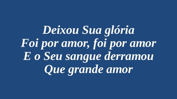 - Deixou Sua glóriaFoi por amor, foi por amorE o Seu sangue derramouQue grande amor