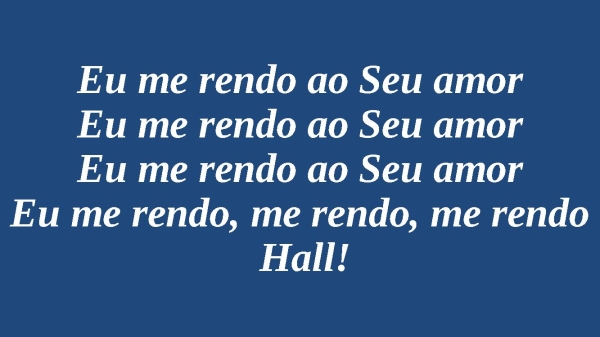 - Eu me rendo ao Seu amorEu me rendo ao Seu amorEu me rendo ao Seu amorEu me rendo, me rendo, me rendo Hall!
