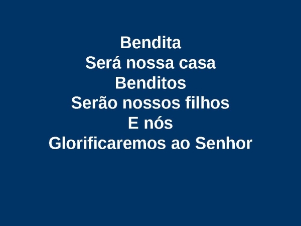 - BenditaSerá nossa casaBenditosSerão nossos filhosE nósGlorificaremos ao Senhor