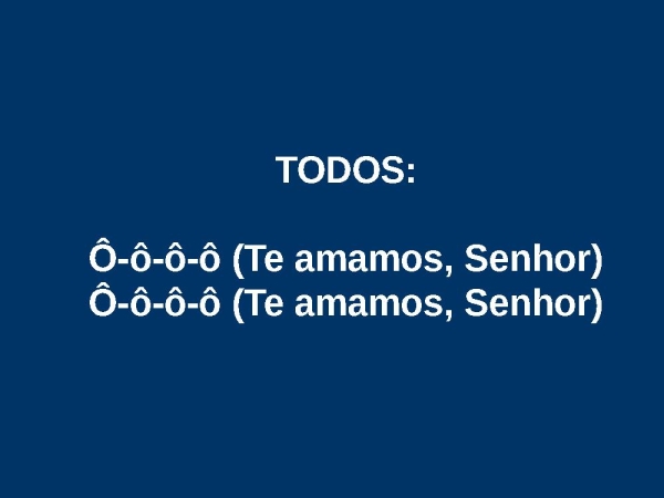 - TODOS:Ô-ô-ô-ô (Te amamos, Senhor)Ô-ô-ô-ô (Te amamos, Senhor)