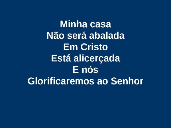 - Minha casaNão será abaladaEm CristoEstá alicerçadaE nósGlorificaremos ao Senhor
