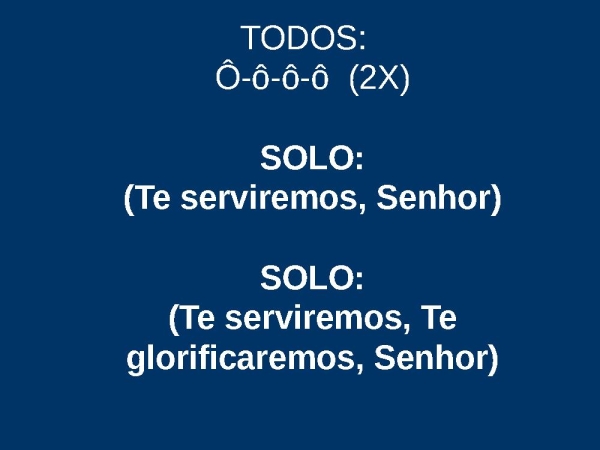 - TODOS: Ô-ô-ô-ô (2X)SOLO:(Te serviremos, Senhor)SOLO:(Te serviremos, Te glorificaremos, Senhor)