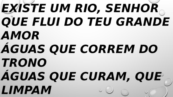 - Existe um rio, Senhor Que flui do Teu grande amor Águas que correm do trono Águas que curam, que limpam